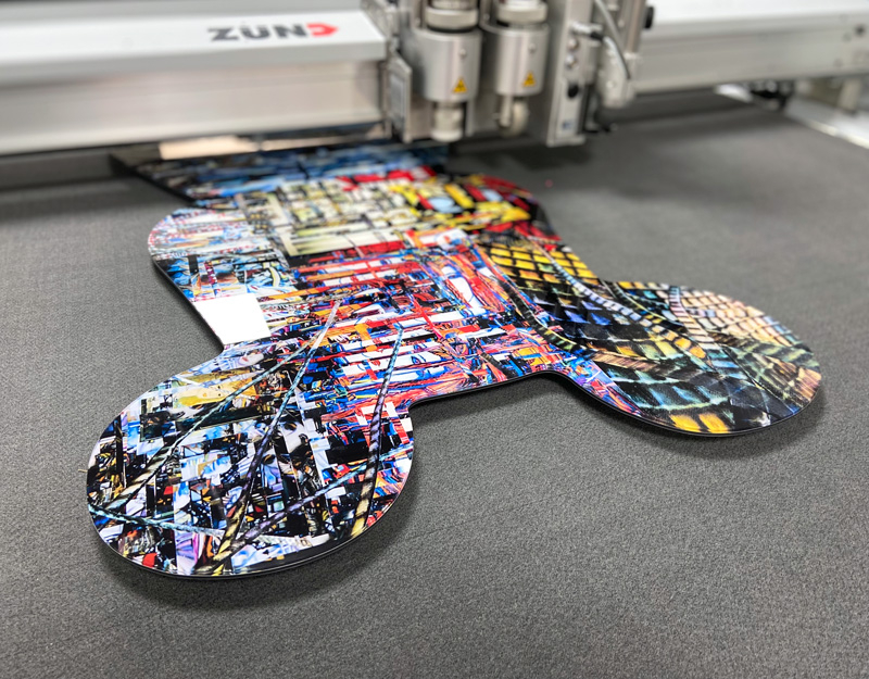 Toutes les étapes de votre réalisation sont fabriquées et conçues de A à Z dans notre laboratoire photo à Dijon grâce à notre savoir-faire et notre expertise dans le secteur du traitement de l'image et de l'impression photo professionnelle. Nous garantissons une qualité d'exécution irréprochable autant sur les projets d'impression photo que de découpe numérique. La découpe est possible sur différentes épaisseurs et matières : découpe Dibond, découpe Plexiglas, et pour différents projets : claustra, pièces sur-mesure, lettrage, silhouette, PLV, forme personnalisée...